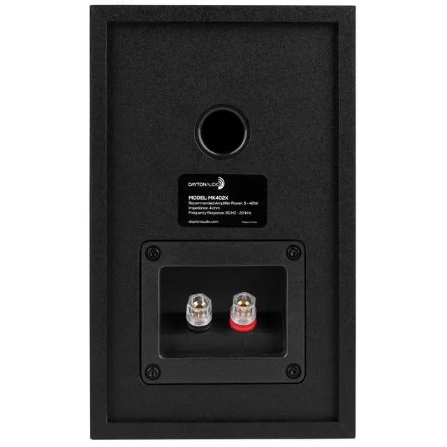 The Dayton Audio MK402X bookshelf speaker pair has the same amenities as the popular MK402 but an upgraded, more refined crossover delivers a smoother, non-fatiguing high-end. It features a 4'' woofer that extends to the low-frequency range and a 3/4'' tweeter that produces high frequencies with a wide dispersion. Amazing sound quality from a speaker this size gives more value for your money.