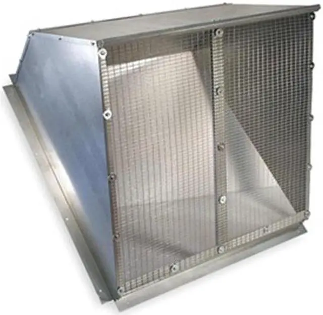 Weatherhood, For Blade Diameter 10 in, For Cut-Out Height 12 1/2 in, For Cut-Out Width 12 1/2 in, For Cut-Out Height (With Wall Collar) 15 5/8 in, For Cut-Out Width (With Wall Collar) 15 5/8 in, Overall Height 14 1/4 in, Overall Width 14 1/4 in, Overall Depth 12 1/2 in, Material Steel, Thickness 20 ga, Finish Galvanized. This item has been restricted from sale in the following state (s): []