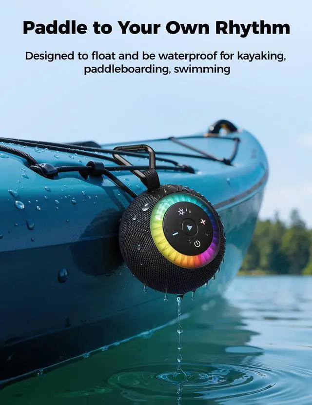[Excellent IPX7 Waterproof and Fogproof Performance]: Featuring a high-density waterproof seal structure and multi-layer composite waterproof technology, this IPX7 waterproof speakercapable of withstanding immersion in 1 meter of water for 30 minutes. It resists heavy rain, splashes, and humid environments effortlessly. Fully enclosed internal components to avoid rust risks. Designed to be floatable and waterproof, this speaker is your summer essentials for every adventurefrom the shower and the pool to kayaking, surfing, and beach parties.
