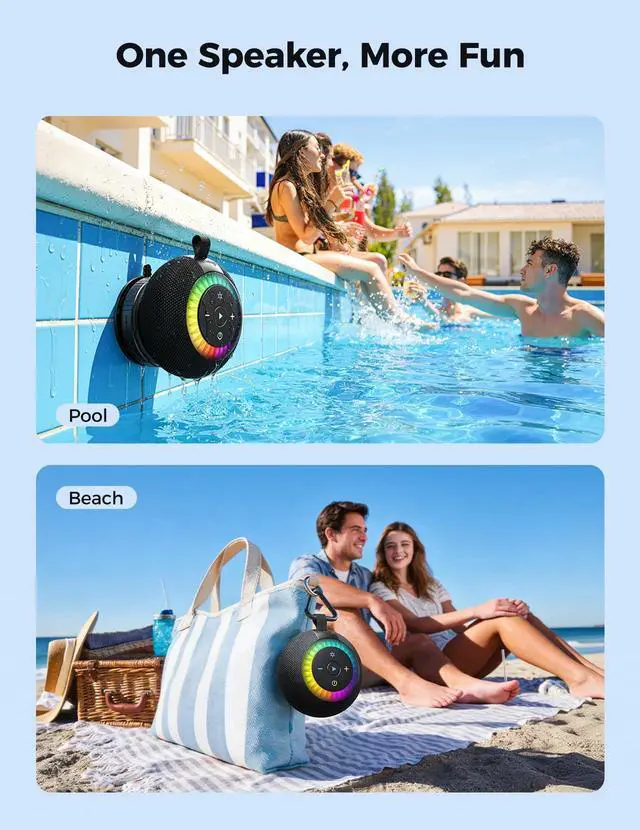 [Excellent IPX7 Waterproof and Fogproof Performance]: Featuring a high-density waterproof seal structure and multi-layer composite waterproof technology, this IPX7 waterproof speakercapable of withstanding immersion in 1 meter of water for 30 minutes. It resists heavy rain, splashes, and humid environments effortlessly. Fully enclosed internal components to avoid rust risks. Designed to be floatable and waterproof, this speaker is your summer essentials for every adventurefrom the shower and the pool to kayaking, surfing, and beach parties.