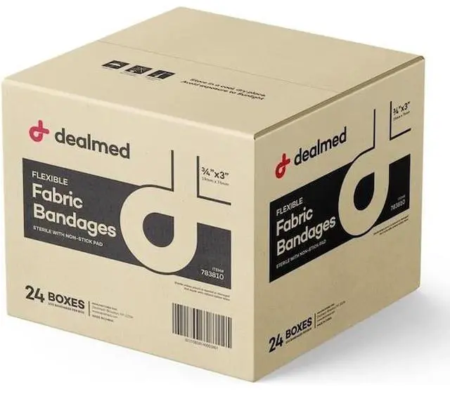 These Dealmed bandages are self-adhesive, non-stick bandages, perfect for administering first aid, first response, and ambulatory treatment of wounds. They are an essential addition to every classroom, office, and home first aid kit. The expertly woven fabric bandages have a flexible adhesive band which adequately covers bumps, scrapes and cuts for optimal protection. Each wound bandage comes individually wrapped in its own package to ensure cleanliness and further protect against possible infection. These incredibly strong and soft fabric bandages will assure that no matter what you're doing, they will move with you to provide incredible coverage and protection.