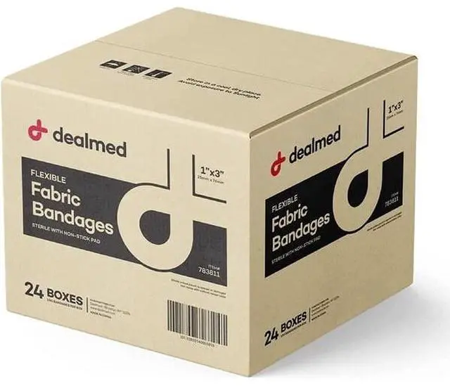 These Dealmed bandages are self-adhesive, non-stick bandages, perfect for administering first aid, first response, and ambulatory treatment of wounds. They are an essential addition to every classroom, office, and home first aid kit. The expertly woven fabric bandages have a flexible adhesive band which adequately covers bumps, scrapes and cuts for optimal protection. Each wound bandage comes individually wrapped in its own package to ensure cleanliness and further protect against possible infection. These incredibly strong and soft fabric bandages will assure that no matter what you're doing, they will move with you to provide incredible coverage and protection.