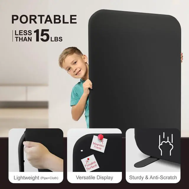 Elevate your space with this portable and expandable standing room dividers. Easily connectable with neodymium magnets (sold separately), it features durable, scratch-resistant fabric and a sturdy steel frame, perfect for residential, commercial, and educational use.
