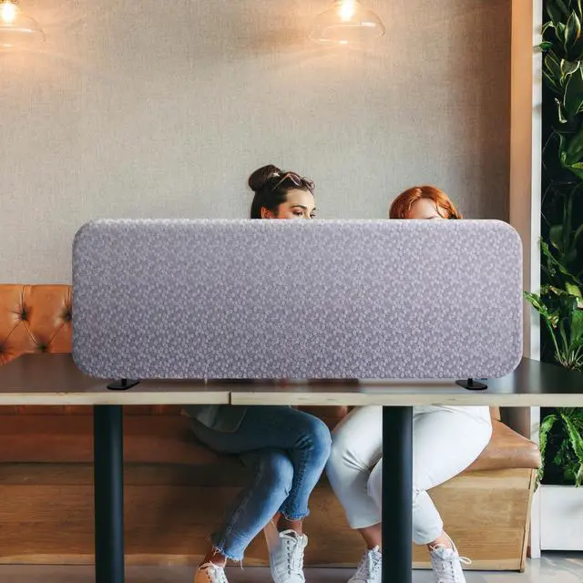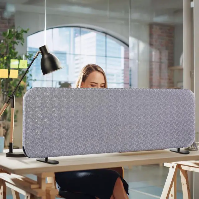 Functional desk screen designed to create privacy and define personal space at home workstations.