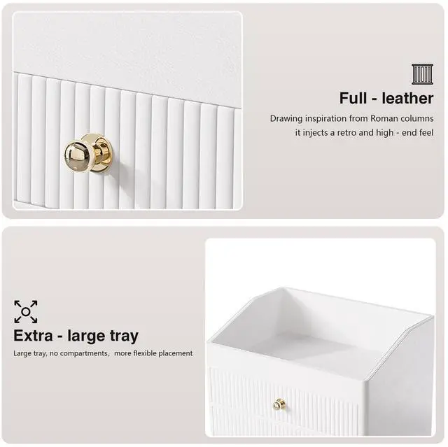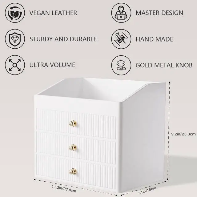 Elevate your skincare game with the Luxury Skincare Organizer, featuring premium beige-white PU leather for a refined, upscale look. This high-capacity cosmetic storage box, with three tiered drawers, is perfect for bedroom dressers, bathroom counters, or vanity tables, offering a chic solution for organizing makeup brushes, creams, serums, and more. Its elegant design complements modern home decor, making it a standout piece for women seeking sophisticated skincare storage. This leather makeup caddy also accommodates jewelry, hair accessories, or small electronics, serving as a multi-functional vanity countertop organizer for dorms, apartments, or professional spaces. A heartfelt gift for moms, this organizer shines for Mothers Day, Christmas, or birthdays, delivering practicality and luxury to women of all ages. Crafted with durable, stain-resistant leather, it ensures long-term use, while its easy-to-clean surface maintains a flawless appearance with minimal effort. Ideal for festive occasions, this cosmetic organizer pairs perfectly with holiday packaging for anniversaries or bridal showers. Its beige-white finish and spacious design make it an essential addition to any beauty routine, combining timeless elegance with unmatched organization for a clutter-free, stylish vanity.