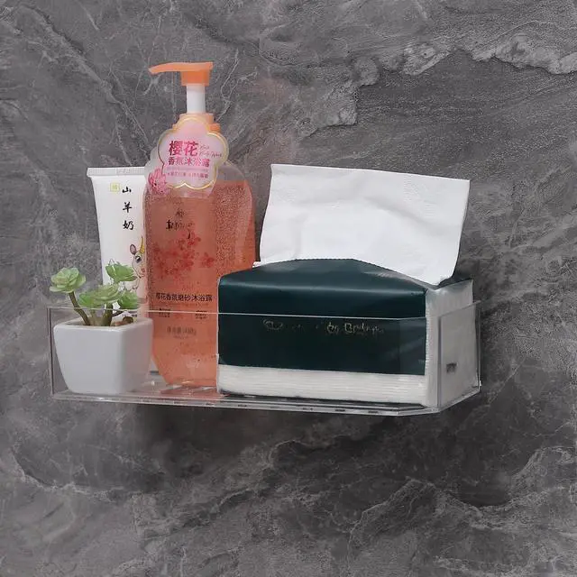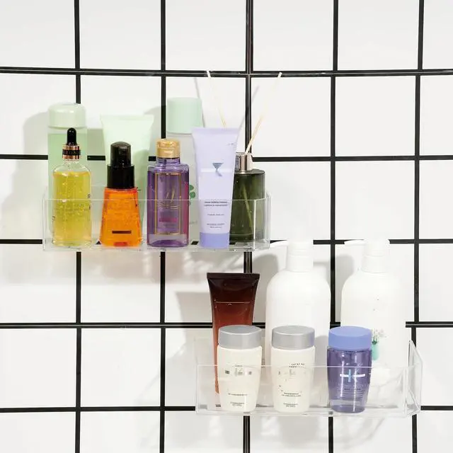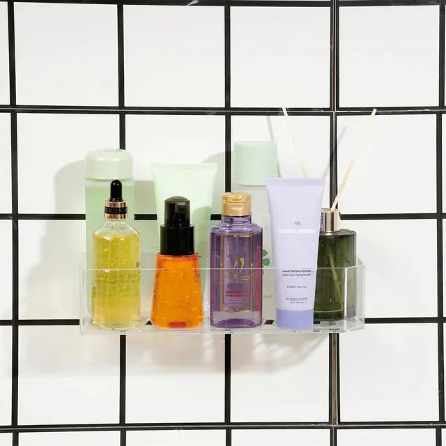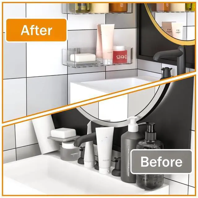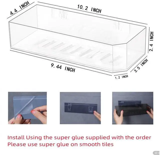 Use super glue, no drilling, please use 24 hours after installationTHE BEST ORGANIZER FOR BATHROOM - 10.2x4.4x2.4 Inch, Provides a convenient place to store large, taller shampoo, conditioner and body wash bottles.