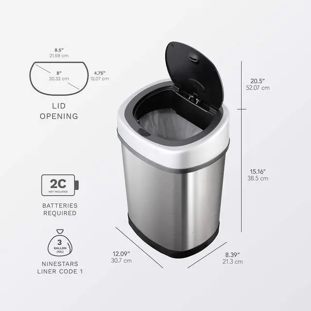 Touch-free Motion Sensor Lid ClouserSeal odor in and eliminate cross-contamination of germs. Requires 2 C batteries (not included), Alkaline battery highly recommended for best performance.