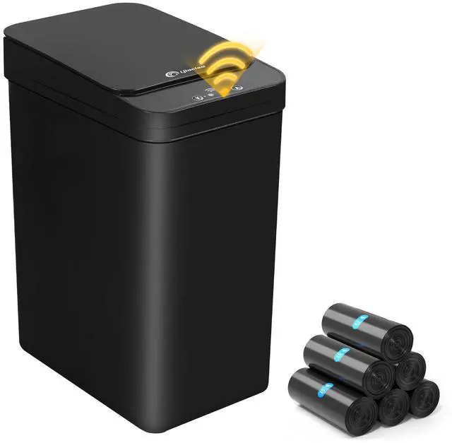 Black Bathroom Trash Can 2.6 Gallon Motion Sensor Trash Cans Automatic Touchless Garbage Bin Small Smart Trash Can for Bathroom,Kitchen, Toilet, Bedroom, RV