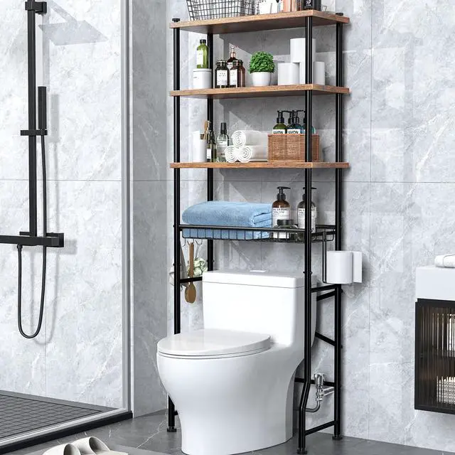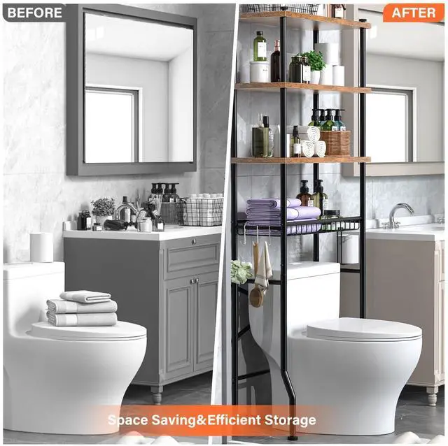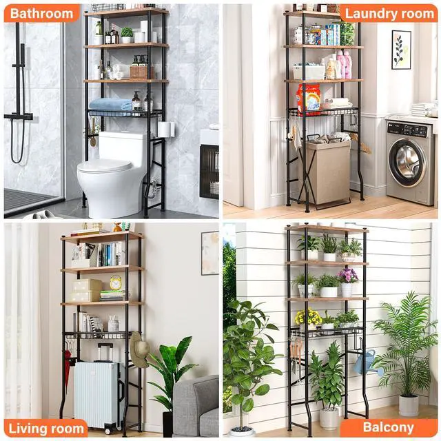 Over-The-Toilet Storage Rack, 4-Tier Bathroom Organizer Shelf Over Toilet with Adjustable Shelf and Basket