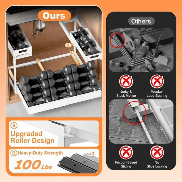 - Smooth & Quiet 3 Glide Rails: Engineered with three heavy-duty ball-bearing glide rails for exceptional stability and 100 lbs weight capacity. This slide-out drawer ensures a completely smooth, quiet, and full-extension slide, making access effortless and silent.