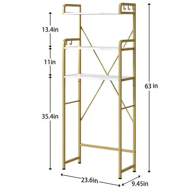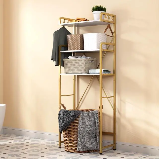 The over the toilet storage shelf has open 3-tier shelf provide plenty of space to helps you to store bath essentials, like toilet paper, towels, shaving-foam, shampoo and soaps.