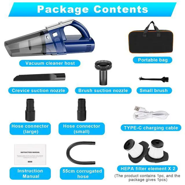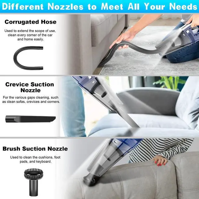 Built-in high-performance motor provides you with powerful suction to pick up debris, crumbs, pet hair, breadcrumbs, particles and dust in your house or car. Easy to clean up all the clutter, handy helper to keep your home and car clean daily.