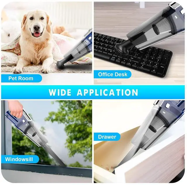 This portable vacuum is perfect for quick pickups and light cleaning, as it is small and lightweight, allowing for easy grabbing and cleaning without the heavy lifting required with regular vacuums. Easy to carry and operate, it can be easily operated with one hand even in tight spaces.