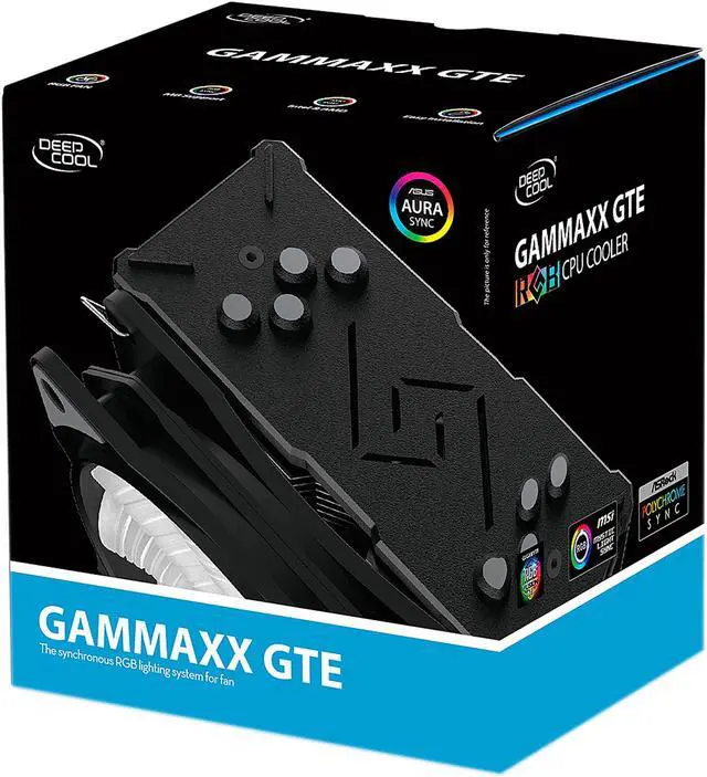 GAMMAXX GTE, a new CPU air cooler that rooted in Deepcool Gammaxx series is here to amaze you. Unique black top-cover and aesthetic RF RGB fan bring the heatsink magic and majestic looks. A fin surface area of more than 5600cm² offers a superior level of cooling performance. With four heatpipes, GAMMAXX GTE is able to achieve ultra-high-efficiency cooling performance, directly removing heat from your prized CPU.