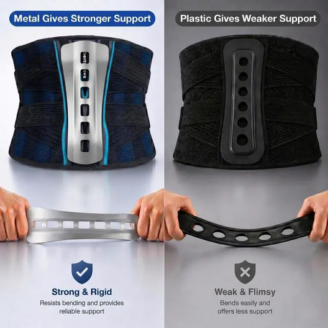 : At the center is a removable curved aluminum support plate designed to give this back brace a firmer, steadier feel than braces that rely on softer inserts or weaker plastic pieces. It follows the natural curve of your lower back for more secure lumbar support, helping you feel better supported during work, lifting, bending, and long hours on your feet.