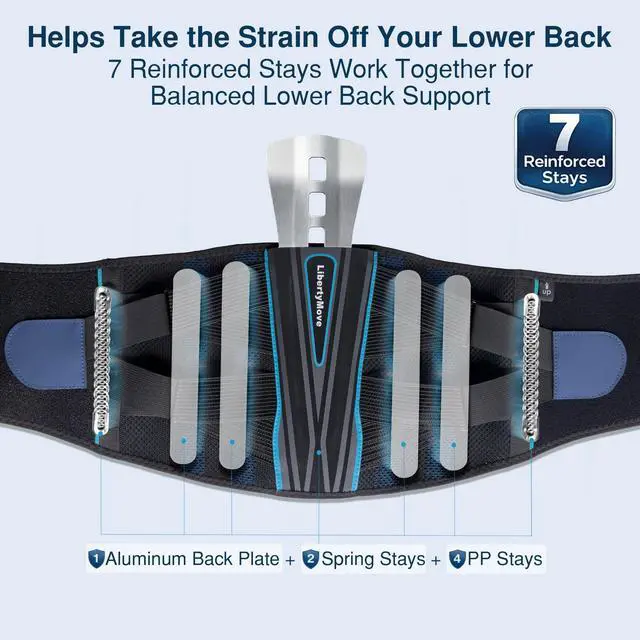 ° : Many back braces press in one place while the rest of the belt shifts around. This back support brace uses reinforced PP stays and flexible spring stays to spread pressure evenly around your waist. Instead of one rigid point digging in, you get balanced lower back support that stays comfortable when sitting, bending, or standing for long hours.