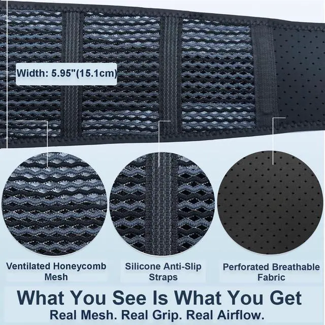 Most back braces trap heat exactly where you sweat the most. This mesh back brace is different.The rear and side panels are engineered with Active-Cool 3D Spacer Mesh, allowing trapped heat to escape from the lower back. A reinforced solid front closure panel ensures a long-lasting hook and loop grip. You get maximum airflow without sacrificing durability, even during all-day wear.