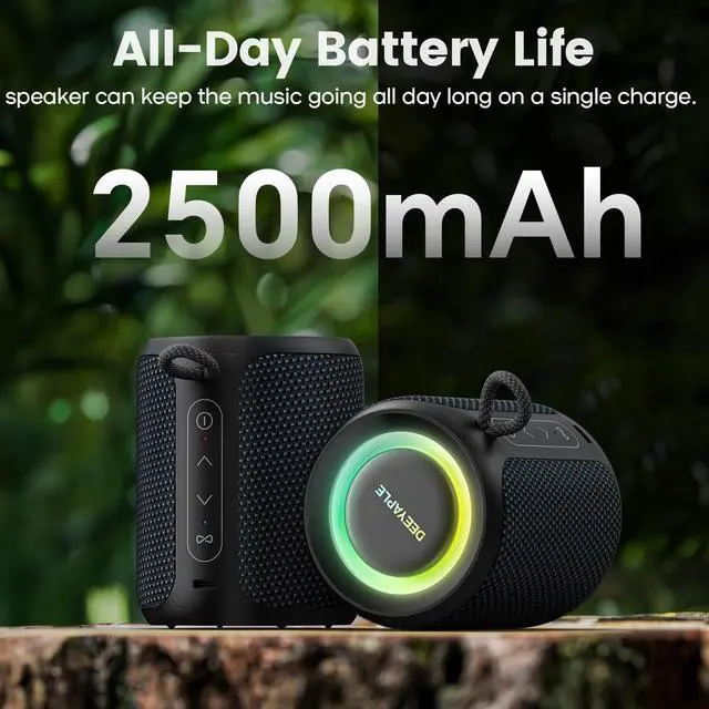 Bluetooth Speaker Wireless, IP67 Waterproof & Dustproof Portable Speaker with Lights, 15W Loud Stereo Sound, 2500mAh Battery All Day Playtime, TWS Pairing, BT5.3, for Home/Party/Outdoor/Beach - Black