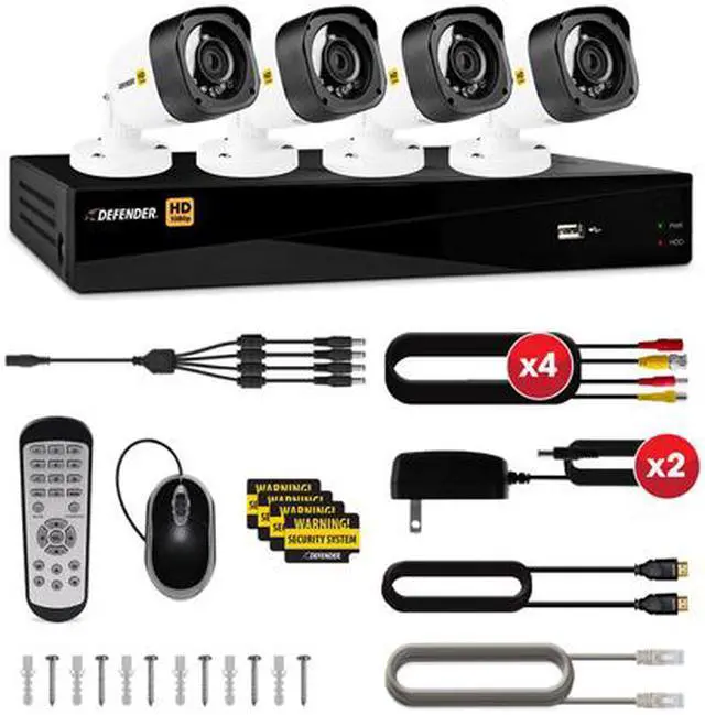 Four HD 1080p bullet cameras made of ultra-lightweight polycarbonate resin, built to protect against vandals. IP66 rated for dust and heavy rainfall protection.