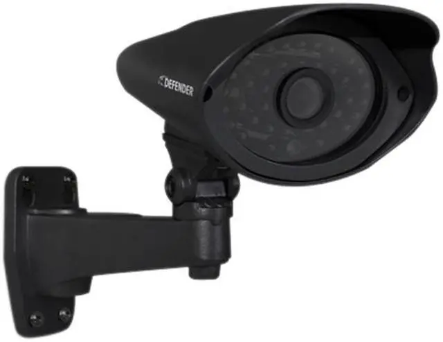 1/3" CMOS CMOS Hi Res Outdoor Security Camera Color 600 TVL 5.0mm Focal Length (35mm Equivalent) Optimal Focal Distance: 20 ft. Angle of View: 60 degrees Number of Infrared LEDs: 38IR LED Night Vision Distance: 110ft Weather Resistance (IP Rating): IP65 Compatible with all Defender DVRs; compatible with all DVRs with BNC video input Compatible Cables and Connector Type: BNC/DC Automatic White Balance