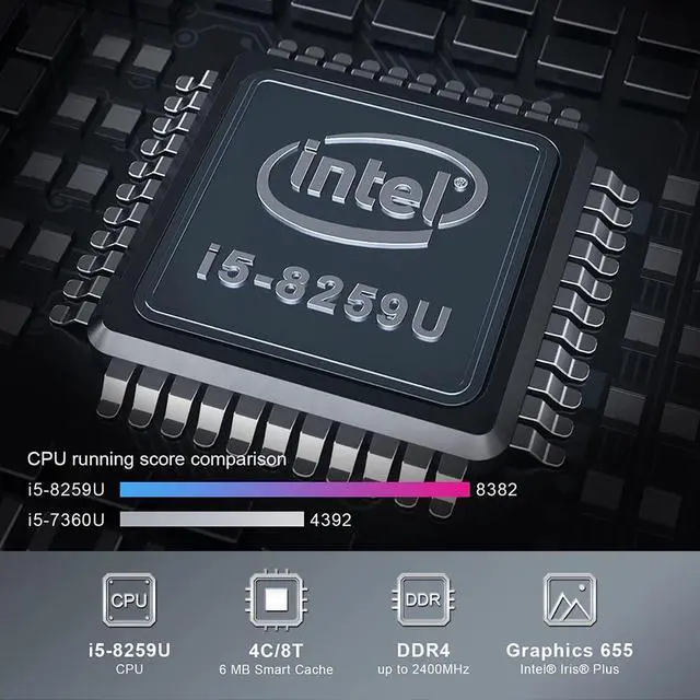 8th Generation ® Coffee Lake i5-8259U, 2.3GHz,Turbo 3.8Ghz(4C/8T)Supports 6MB Smart Cache