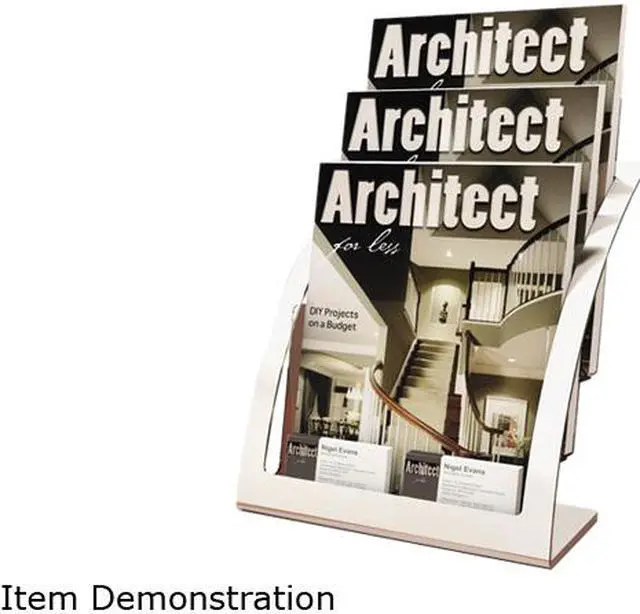 Compact, three-tier countertop leaflet or magazine holder lets you display a variety of leaflets or magazines at once, while saving valuable counter space. Sleek curves and an open design create an inviting display in reception areas, lobbies or trade shows. Silver frame with lightly frosted front panel provides easy viewing of literature. Includes built-in space for business cards. Made from durable plastic. Use as standalone display on countertop or mount on wall.