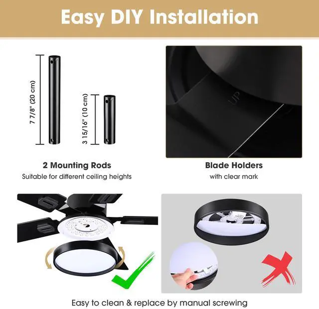 - Reversible Design - Comes with a reversible motor to enable the fan to spin counterclockwise for downward airflow to keep your room cool in hot weather, and turn clockwise for upward airflow to help circulate the warm air generated by the furnace through the room in cold weather