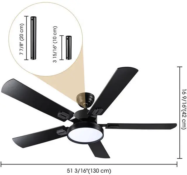 - 2in1 Ceiling Fan with Light - DELight 52" Flush Mount Ceiling Fan with LED Light combines the functions of fan & light, featuring sleek cylindrical metal housing & 5 double-sided blades in walnut wood texture & matte black finish for a clean, stylish look, perfectly matching modern or industrial styled decor