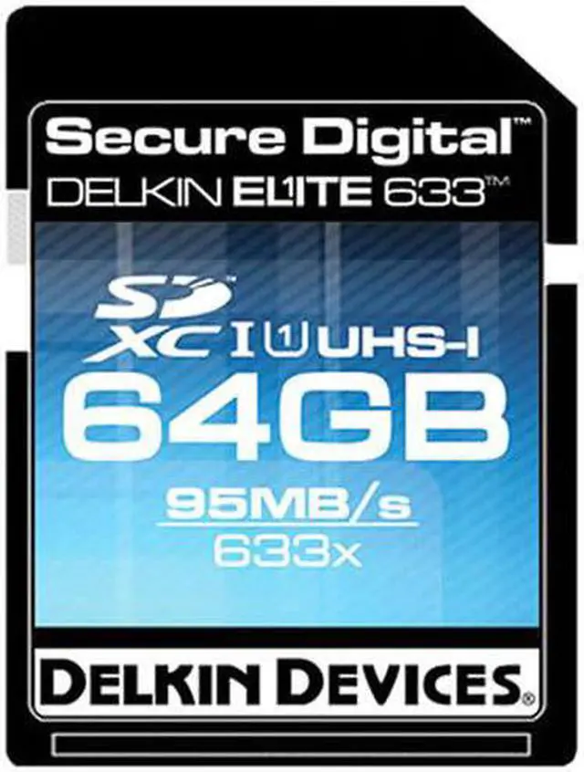 Delkin BBSDELITE633-64GB CVK 64GB 9p SDXC r95MB/s w45MB/s UHS-I U1 Elite 633 Secure Digital Extended Capacity Card Bulk