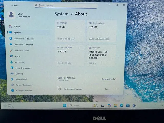 Dell Latitude 3380 13.3" HD Laptop Intel Core i3-6006U 2GHz 4 GB RAM 128 GB SSD Windows 11 Pro