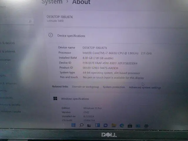 Dell Latitude 5400 14" Intel Core i7-8665U 1.90GHz 8GB 256GB SSD Windows 11 Pro Laptop
