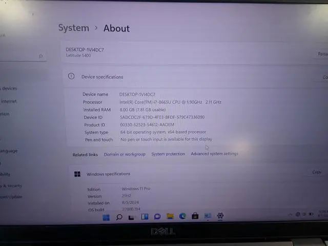 Dell Latitude 5400 14" Intel Core i7-8665U 1.90GH z 8GB RAM 512GB SSD Windows 11 Pro Laptop