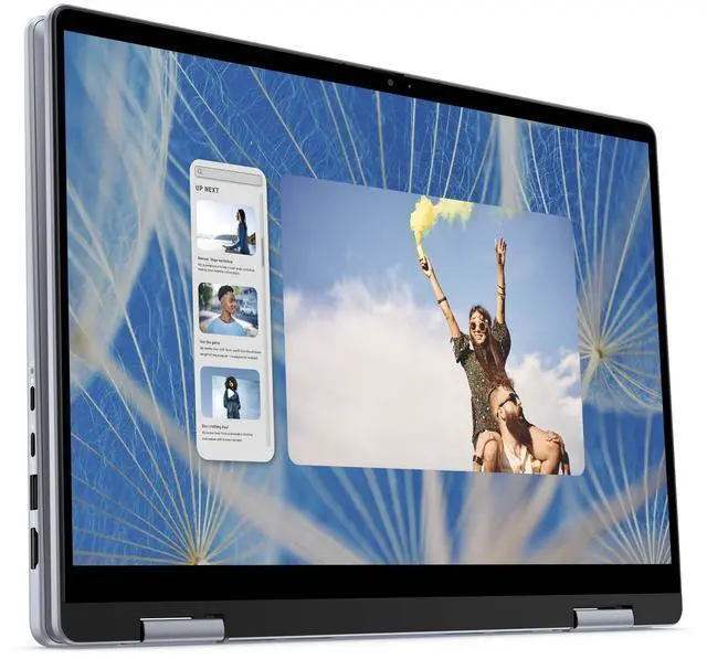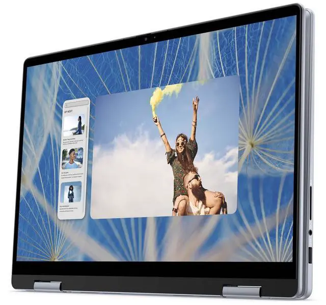 The Inspiron 14 2-in-1 Laptop 7440 blends flexibility and performance in a sleek Ice Blue aluminum chassis. Its 14" Touch FHD+ display with ComfortView delivers vibrant visuals while reducing eye strain, making it ideal for long work sessions, streaming, and creative tasks. Powered by a 13thGen Intel® Core i51334U processor and 8GB DDR5 memory, the system handles multitasking, web browsing, and light content creation with ease.