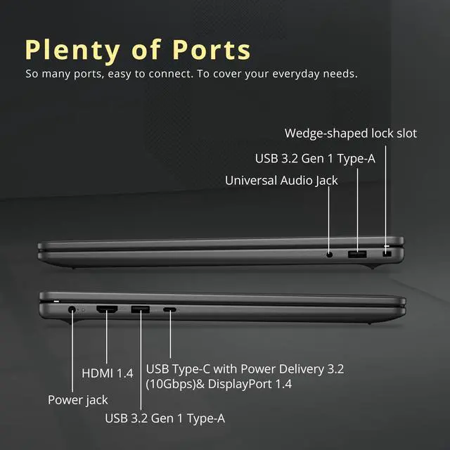 Windows 11 Home: 14.06''x9.86''x0.72'', 4.4 lbs. Ports: 1x USB-C, 2x USB-A, 1x HDMI 1.4, 1x Power Jack, 1x Audio Jack. Wi-Fi 6+Bluetooth 5.2. Bonus Docking Station Set: 1x 7-in-1 Docking Station with 1TB Storage, 1x 32GB MicroSD Card with Adapter, 1x Type-C Data Cable, 1x 3-in-1 Charging Cable, 1x Suede Cleaning Cloth.
