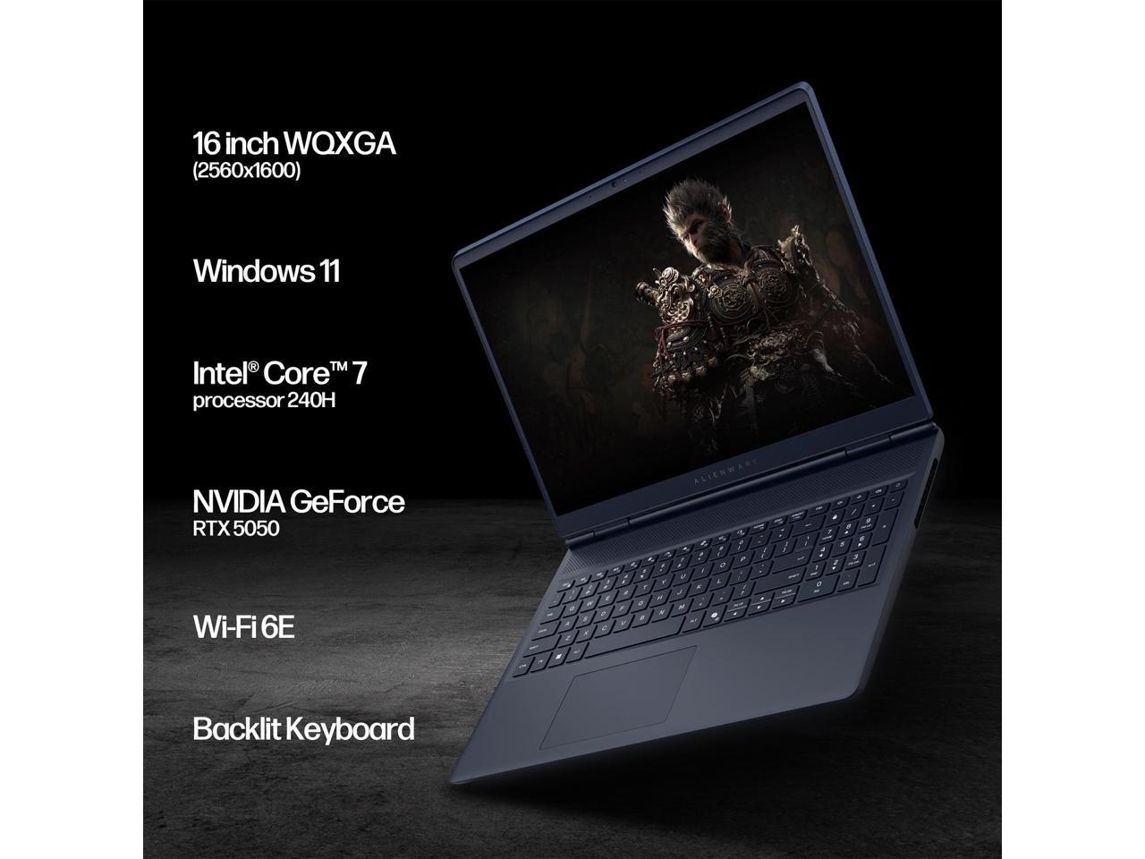 Dell Alienware 16 Aurora Gaming Laptop AC16250, 16" WQXGA Display, NVIDIA GeForce RTX 5050, Intel Core 7-240H, 32GB RAM, 1TB SSD, Backlit Keyboard, with Mytrix Assy Office Lifetime, Wins 11 Pro