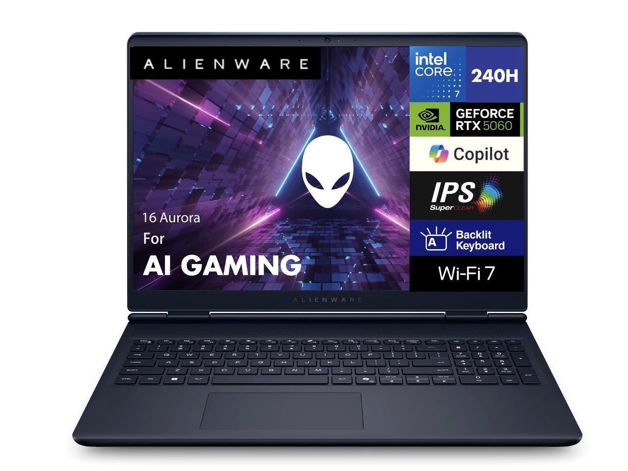 Alienware 16 Aurora AC16250 AI Gaming Laptop 16.0" 120Hz IPS WQXGA Display (Intel Core 7 240H, NVIDIA GeForce RTX 5060 8GB, 32GB DDR5, 4TB PCIe SSD, Backlit KB, WiFi 7, Webcam, Win 11 Pro)