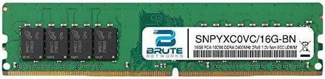 Dell Compatible SNPYXC0VC/16G - 16GB PC4-19200 DDR4-2400Mhz 2Rx8 1.2v ECC UDIMM SNPYXC0VC/16G-BN is a Dell compatible 16GB PC4-19200 DDR4-2400Mhz 2Rx8 1.2v ECC UDIMM, equivalent to Dell labeled PN#: SNPYXC0VC/16G. Brute Networks modules are all major brand (Samsung, SK Hynix, or Micron). This module is guaranteed compatible with your server, as well as guaranteed to maintain your factory warranty, since Brute Networks modules are from the same manufacturers Dell uses for their OEM branded modules.