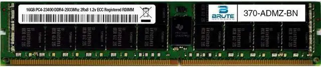 Brute Networks 370-ADMZ-BN is an OEM compatible 16GB PC4-23400 DDR4-2933Mhz 2Rx8 1.2v ECC Registered RDIMM , equivalent to Dell labeled PN#: 370-ADMZ