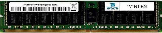 Brute Networks 1V1N1-BN is an OEM compatible 16GB PC5-38400 DDR5-4800Mhz 1Rx8 ECC Registered RDIMM, equivalent to Dell labeled PN#: 1V1N1