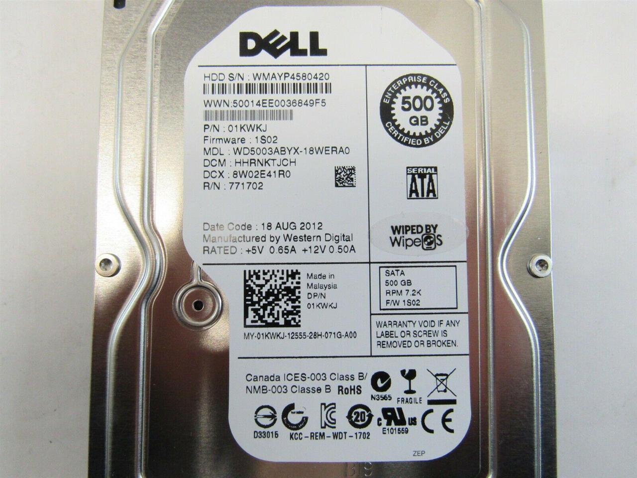 DELL 1Kwkj 500Gb 7200Rpm Sataii 64Mb Buffer 3.5In Low Profile(1.0Inch) Hard Drive With Tray For Poweredge Server