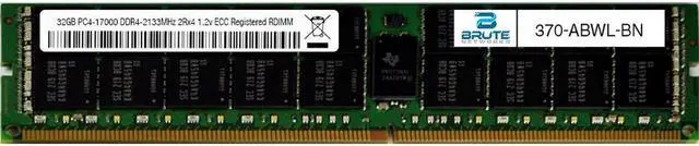 Dell Compatible 370-ABWL - 32GB PC4-17000 DDR4-2133Mhz 2Rx4 1.2v Registered RDIMM 370-ABWL-BN is a Dell compatible 32GB PC4-17000 DDR4-2133Mhz 2Rx4 1.2v Registered RDIMM, equivalent to Dell labeled PN#: 370-ABWL. Brute Networks modules are all major brand (Samsung, SK Hynix, or Micron). This module is guaranteed compatible with your server, as well as guaranteed to maintain your factory warranty, since Brute Networks modules are from the same manufacturers Dell uses for their OEM branded modules.