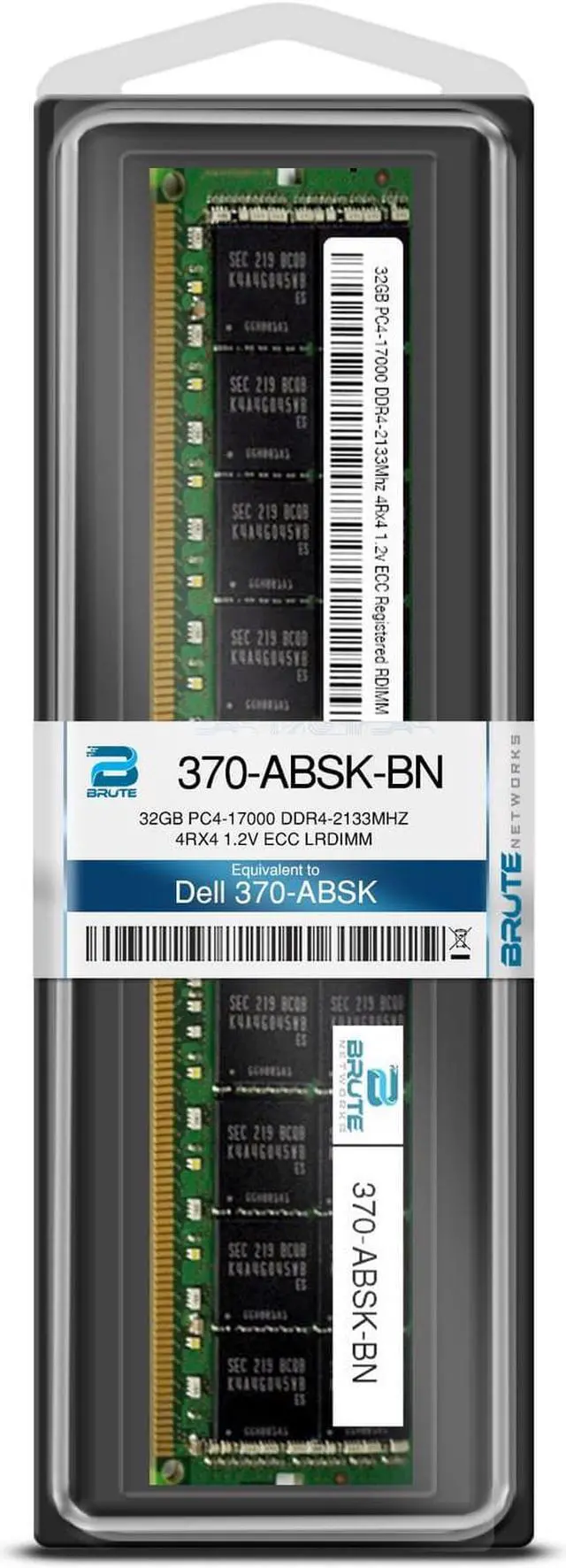 370-ABSK-BN is a Dell compatible 32GB PC4-17000 DDR4-2133Mhz 4Rx4 1.2v ECC Registered RDIMM, equivalent to Dell labeled PN#: 370-ABSK. Brute Networks modules are all major brand (Samsung, SK Hynix, or Micron). This module is guaranteed compatible with your computer, as well as guaranteed to maintain your factory warranty, since Brute Networks modules are from the same manufacturers Dell uses for their OEM branded modules.