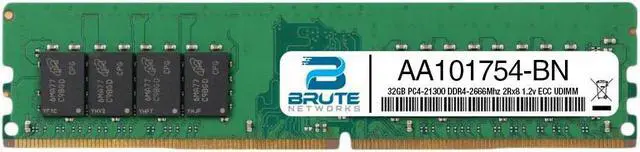 Brute Networks AA101754-BN is an OEM compatible 32GB PC4-21300 DDR4-2666Mhz 2Rx8 1.2v ECC UDIMM , equivalent to Dell labeled PN#: AA101754
