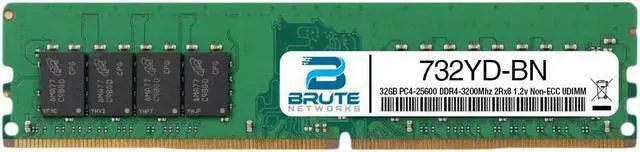 Brute Networks 732YD-BN is an OEM compatible 32GB PC4-25600 DDR4-3200Mhz 2Rx8 1.2v Non-ECC UDIMM , equivalent to Dell labeled PN#: 732YD