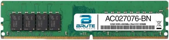 Brute Networks AC027076-BN is an OEM compatible 32GB PC5-38400 DDR5-4800Mhz 2Rx8 ECC UDIMM, equivalent to Dell labeled PN#: AC027076