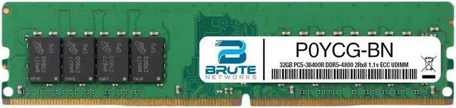 Brute Networks P0YCG-BN is an OEM compatible 32GB PC5-38400 DDR5-4800Mhz 2Rx8 ECC UDIMM, equivalent to Dell labeled PN#: P0YCG