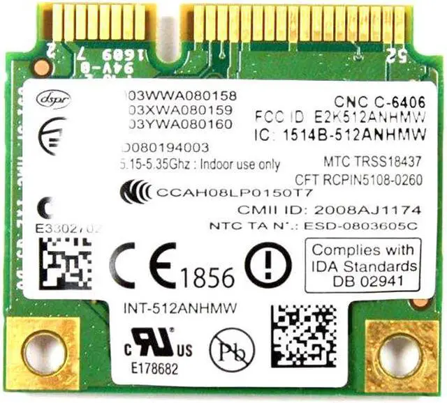 Description: Dell Inspiron 1545 1570 WiFi Link 5100 Mini PCI-e 802.11 n 512AN_HMW