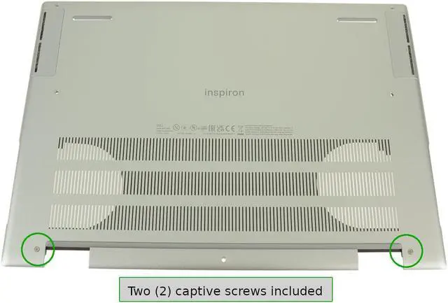 Genuine Dell OEM original Bottom Base Assembly Cover for the Dell Inspiron 14 Plus 7420. This cover includes the rubber feet and two (2) captive screws.