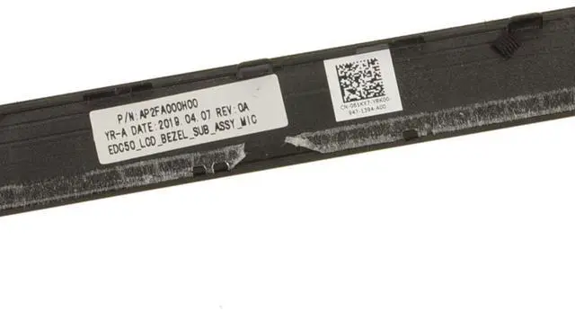 Genuine Dell OEM 15.6" Front Trim LCD Bezel, compatible with the Latitude 5500 / 5501 and Precision 3540 / 3541 Laptop with microphone only. This bezel does not include the camera window, for systems that do NOT have a web cam.
