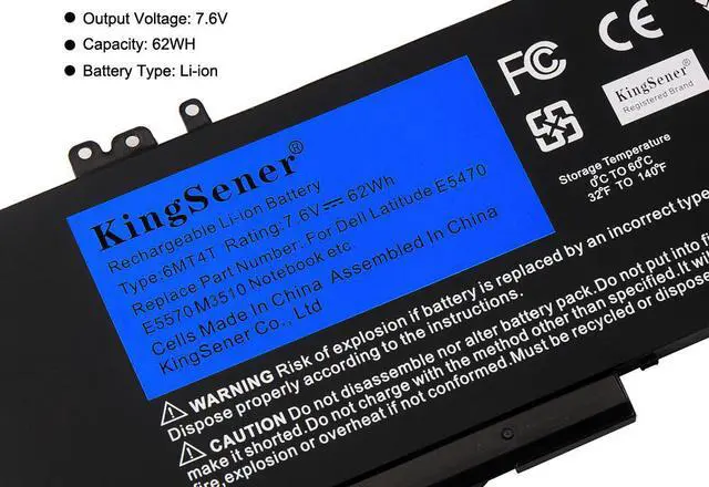 KingSener 6MT4T Replacement Battery Laptop Notebook Batteries For Dell Latitude E5470 E5570 Series Precision M3510 79VRK 07V69Y TXF9M 7.6V 62WH 4 Cells